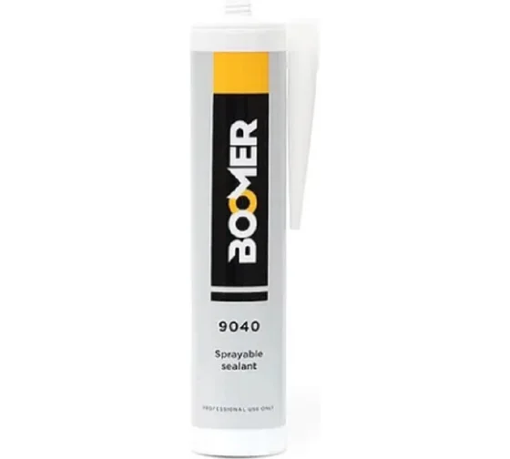 Однокомпонентный распыляемый герметик BOOMER 9040 может быть нанесен методом распыления, а так же в качестве шовного герметика или при помощи кисти.