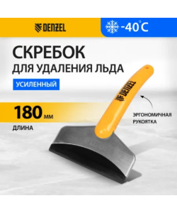 Усиленный скребок для удаления льда Denzel 55329 применяется для очищения зеркал и стекол автомобиля от налипшего и примерзшего снега. За счет небольшого размера 180 х 110 мм скребок удобно хранить в салоне автомобиля.